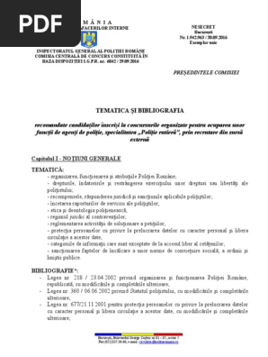 Tematica Si Bibliografia Incadrare Directa Politie Rutiera