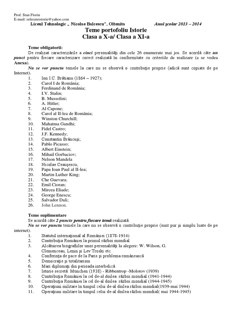 Teme Portofoliu Istorie X Xi