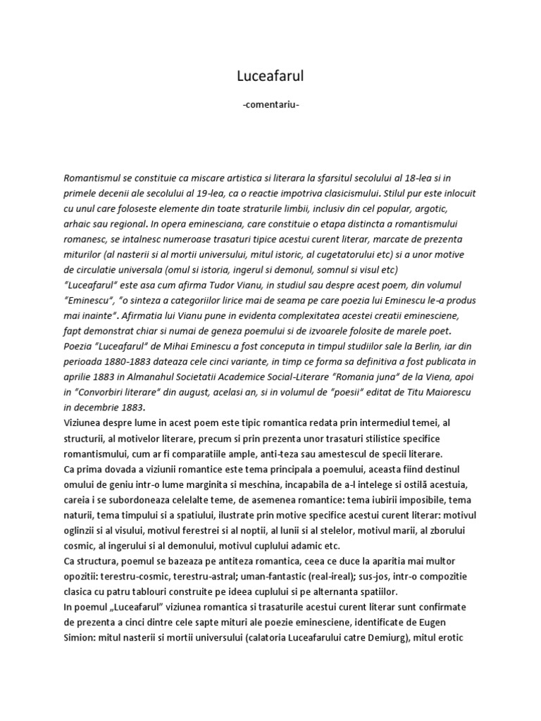 Referat Comentariul Poemului Luceafarul 327241 Graduo