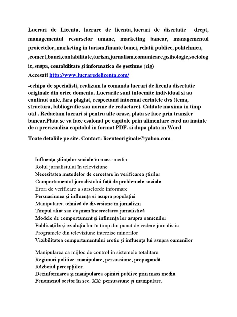 Realizez Lucrari De Disertatii Licente Lucrari De Licenta Lucrare De Licenta Lucrare De Disertatie Jurnalism