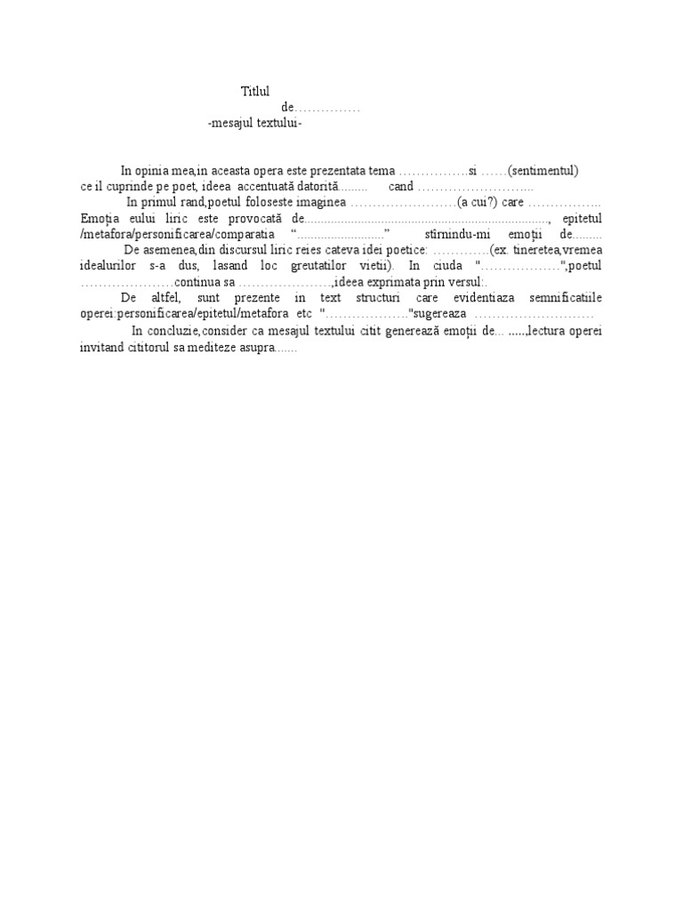 Exprimarea Opiniei Despre Mesajul Unei Opere Lirice