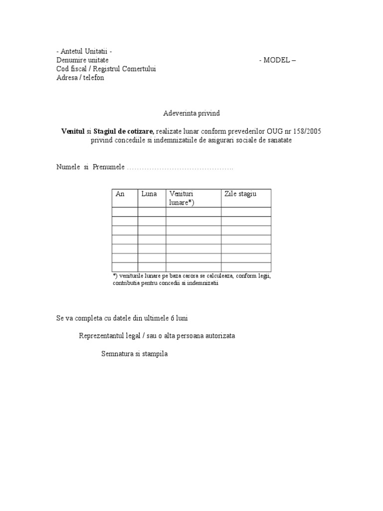 Adeverinta Stagiu De Cotizare Model 2019