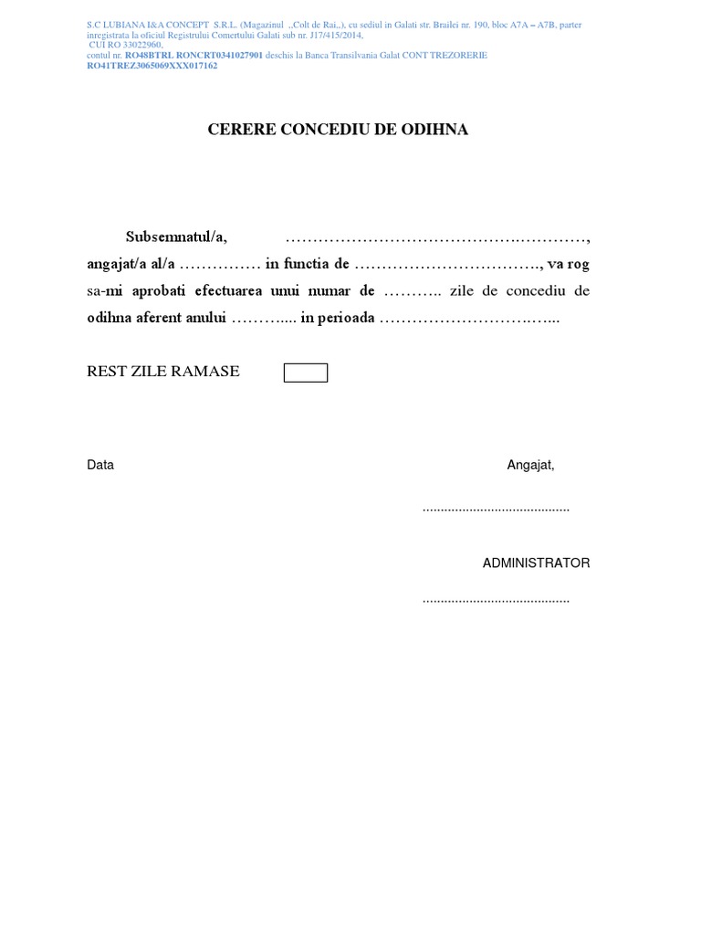 Cerere Pentru Concediu De Odihna Model Word Pdf Sau Excel