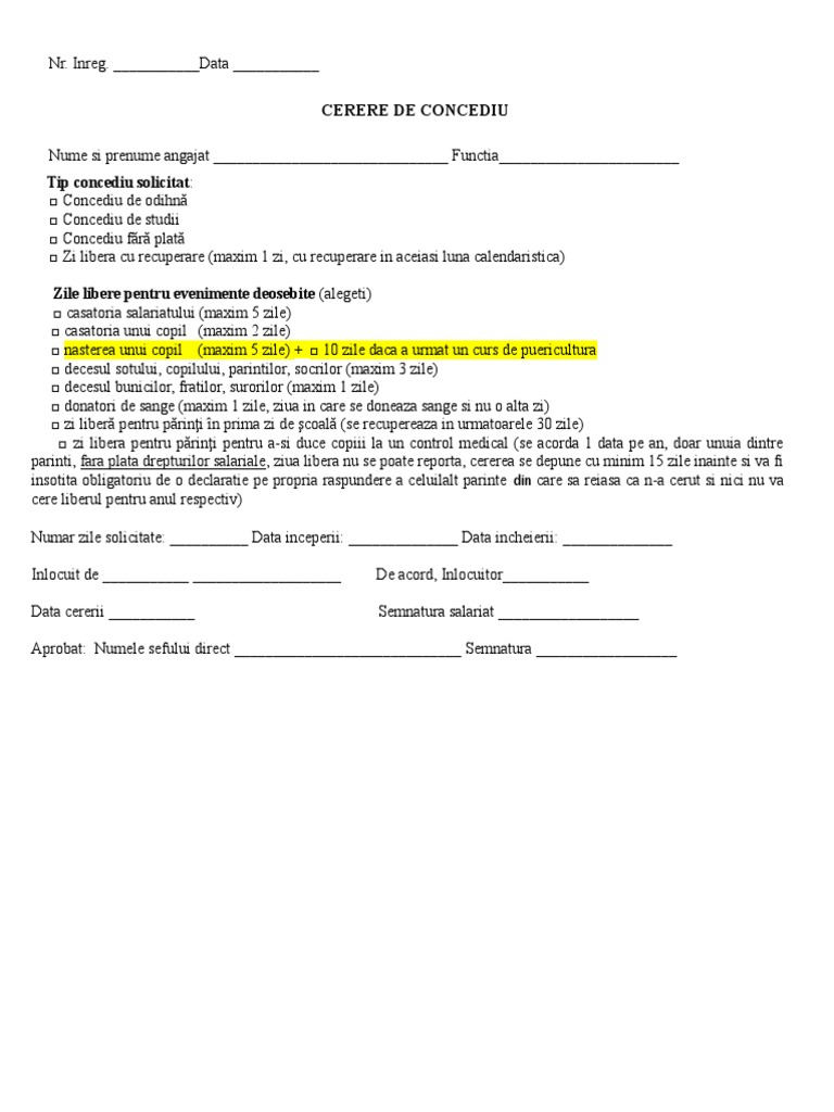 Model Cerere Zile Libere Plătite Pentru Evenimente Deosebite In Familie