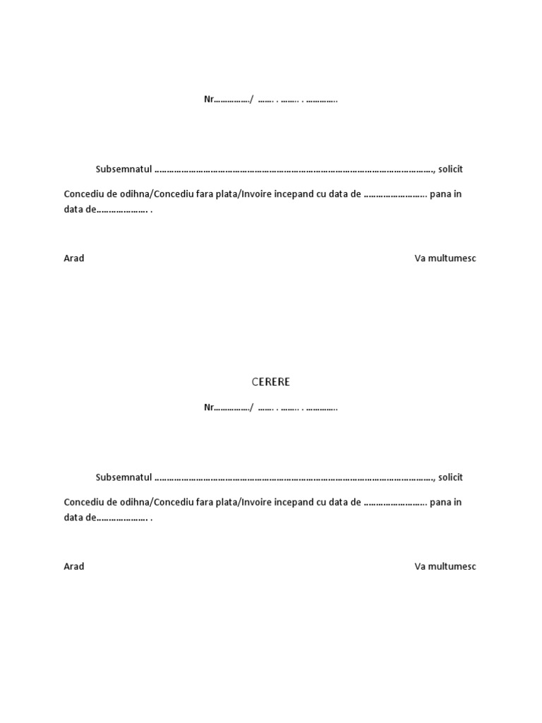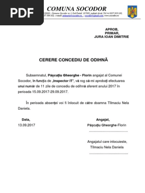 Cerere Pentru Concediu De Odihna Model Word Pdf Sau Excel