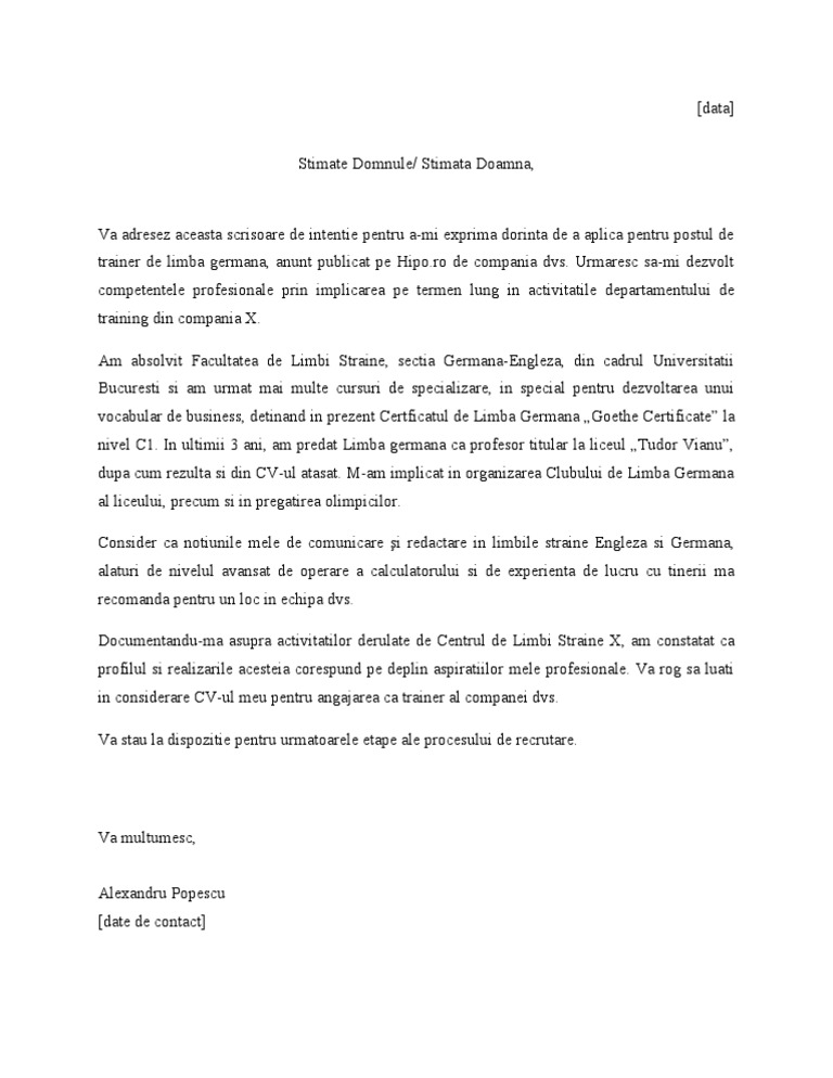 Imagini Pentru Model Scrisoare De Intentie Model