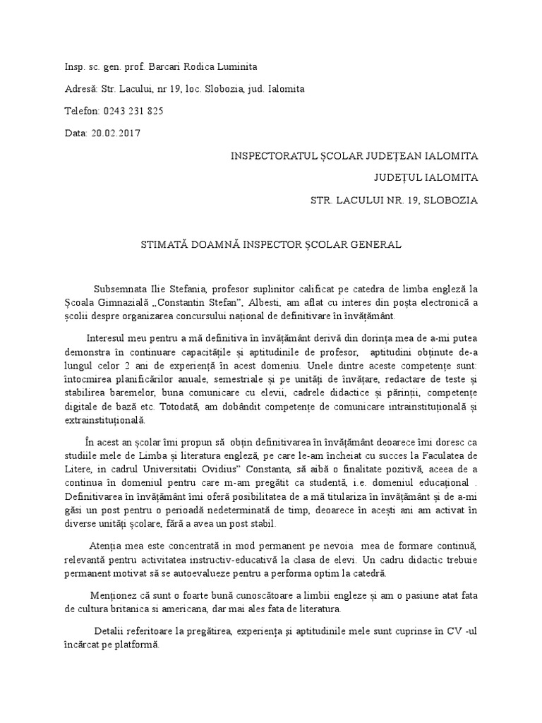 Scrisoare De Intentie Definitivat