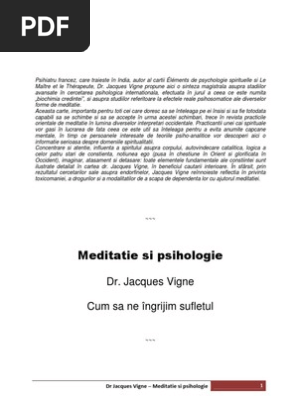 Dr Jacques Vigne Meditatie Si Psihologie