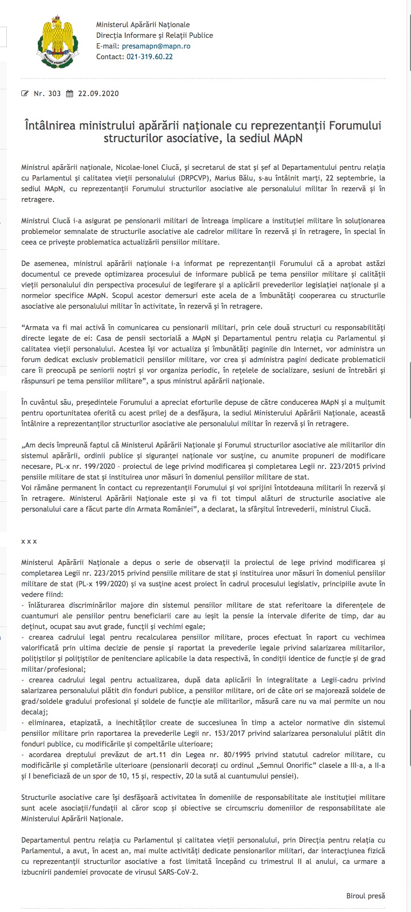Ministerul Apărării Naționale Susține Modificarea Legii Privind Pensiile Militare Unul Dintre Obiective Eliminarea Discriminărilor Dintre Beneficiari
