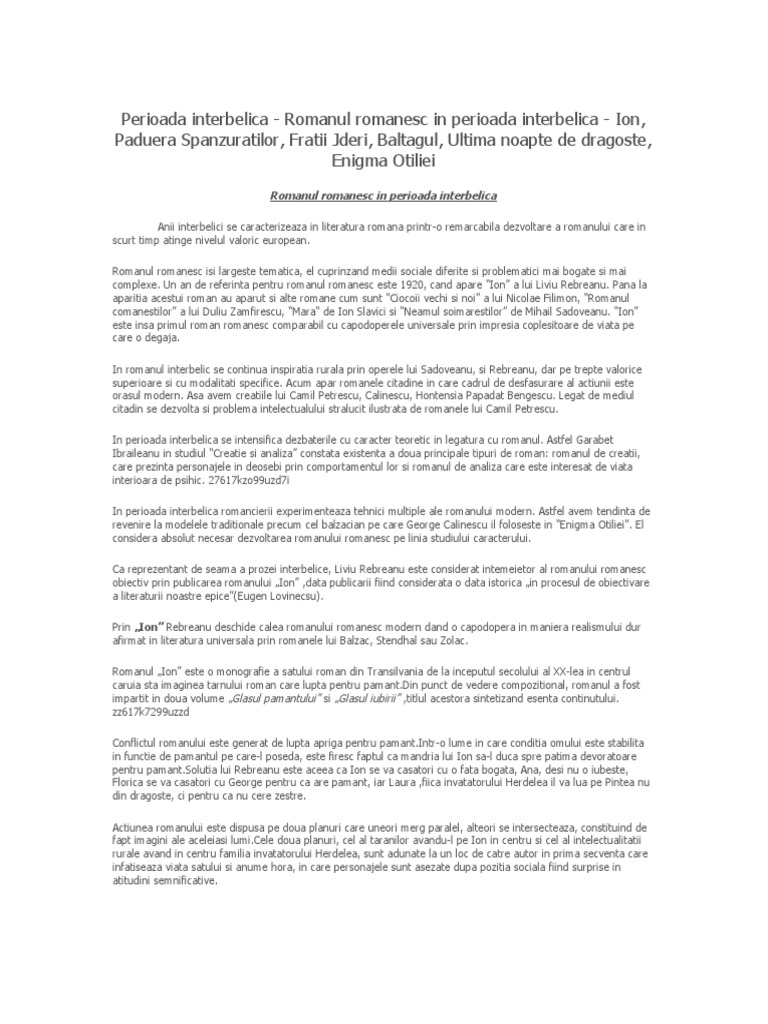 Referat Romanul Romanesc In Perioada Interbelica Prezentare Generala Romana 240354