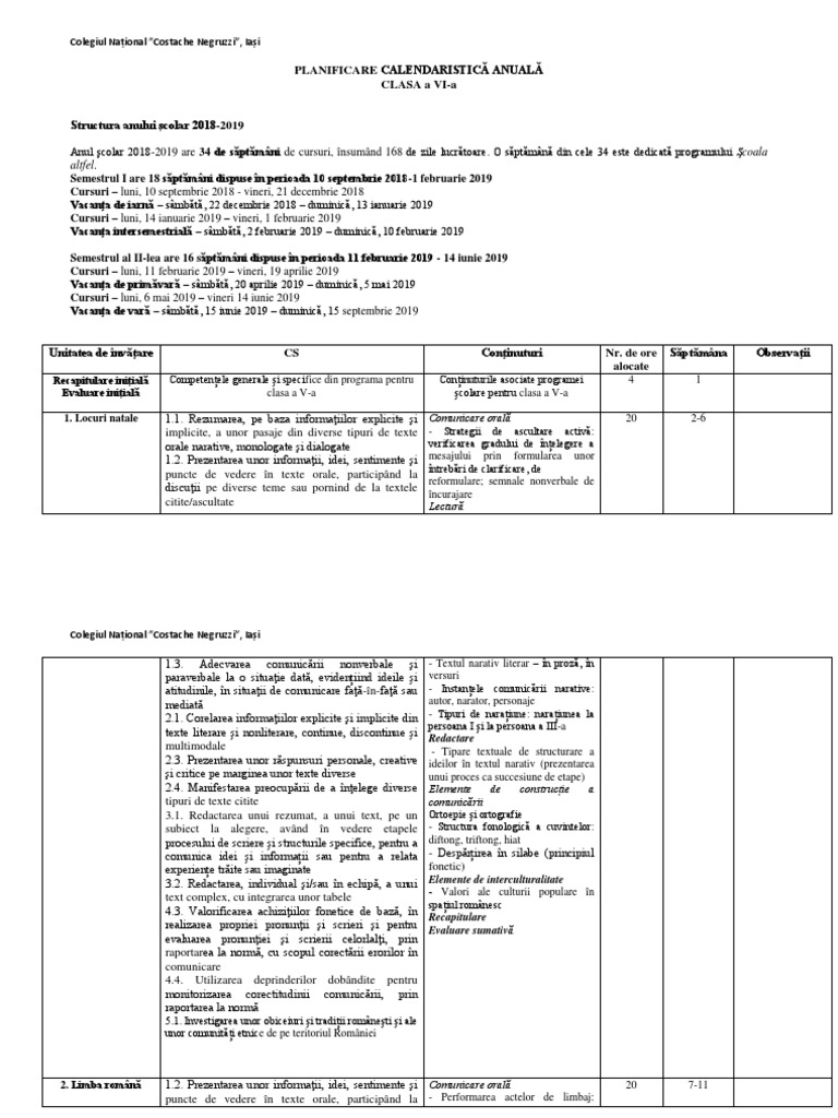 Planificare Calendaristica Integrata Cls A Ii A De Postat