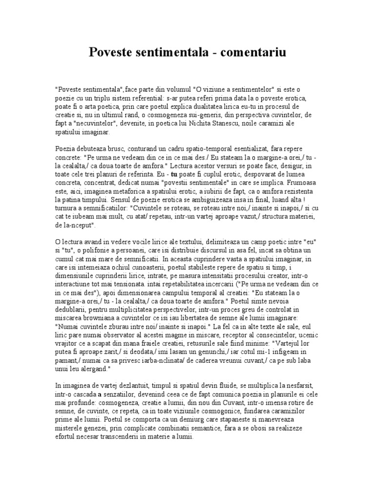 Poezie Poveste Sentimentală De Nichita Stănescu 1 De Ce Crezi Ca Nu Exista Un Loc De Intalnire A Brainly Ro