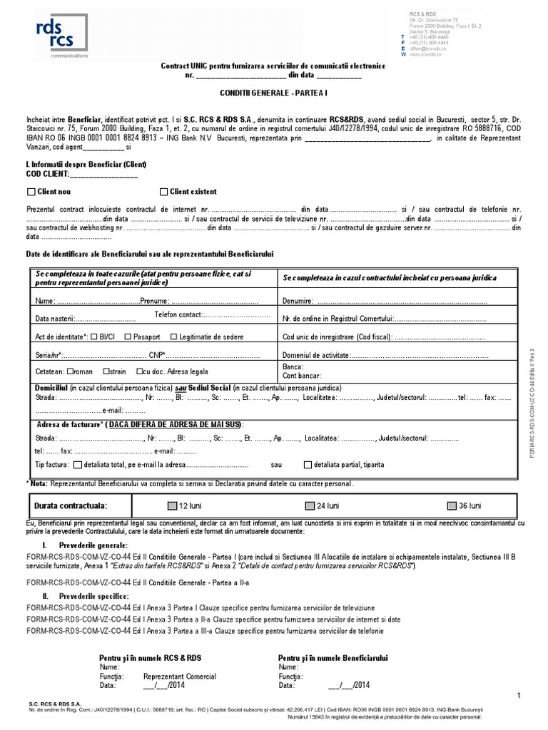 Form Rcs Rds Com Vz Co 44 Editia Ii Rev 3 Contract Unic Business Conditii Generale Partea I
