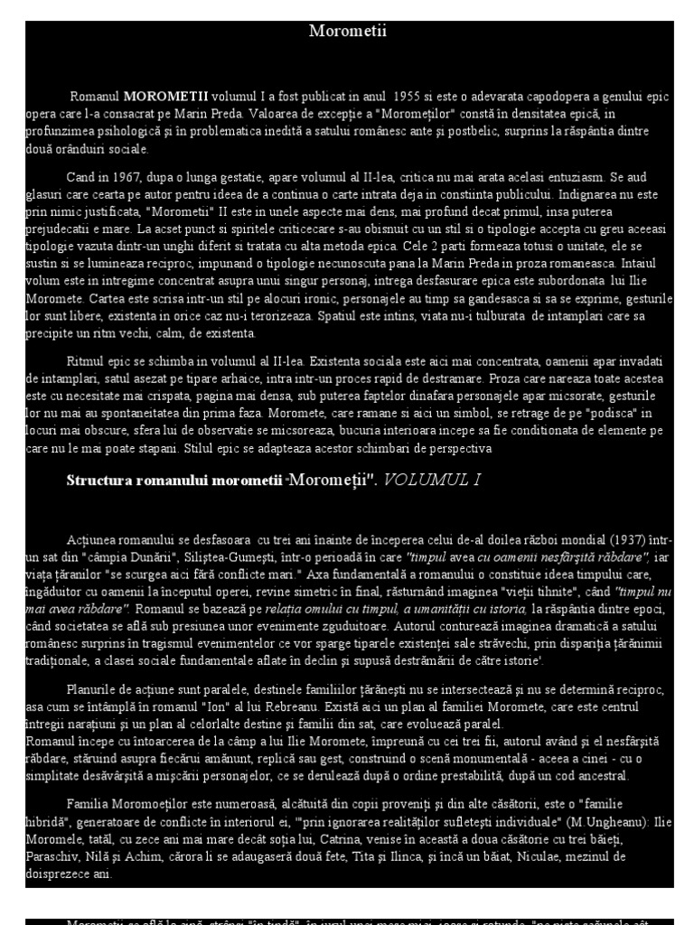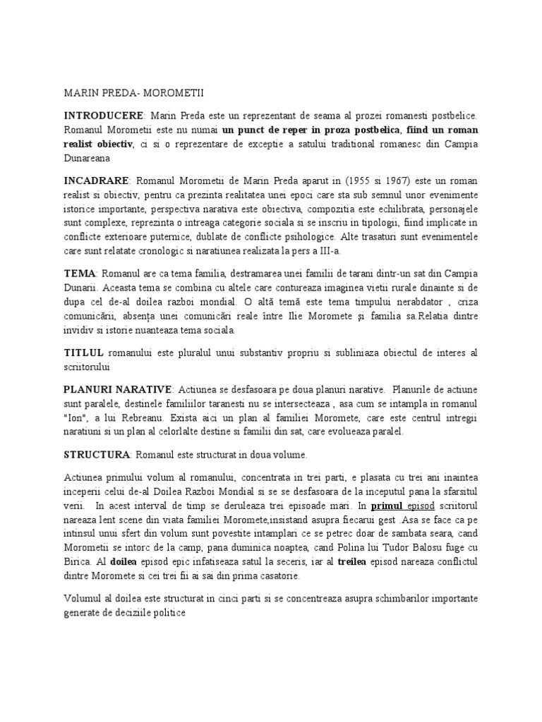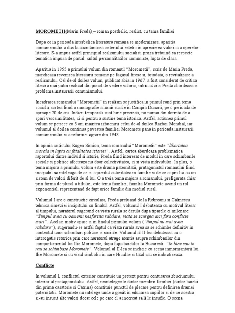 Doc Moromeţii De Marin Preda Marcel Boscanean Academia Edu