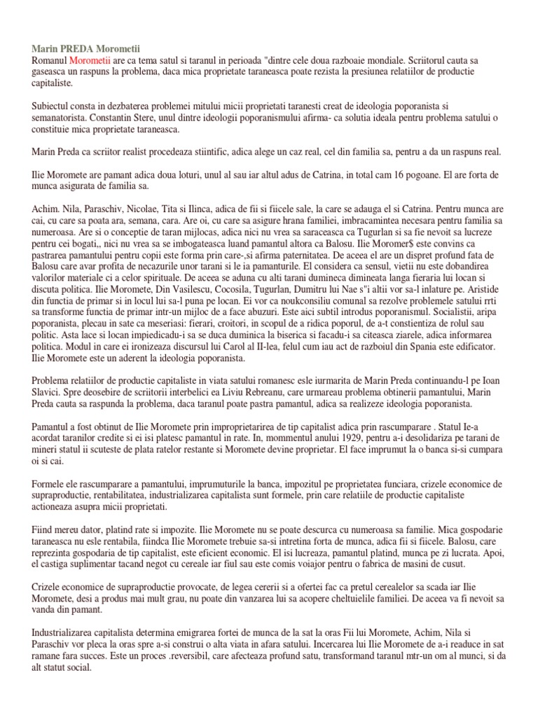 Doc Morometii De Marin Preda Albert Mihai Academia Edu