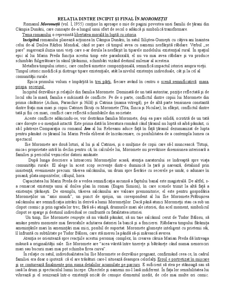 Doc Morometii Marin Preda Comentariu Rose White Academia Edu