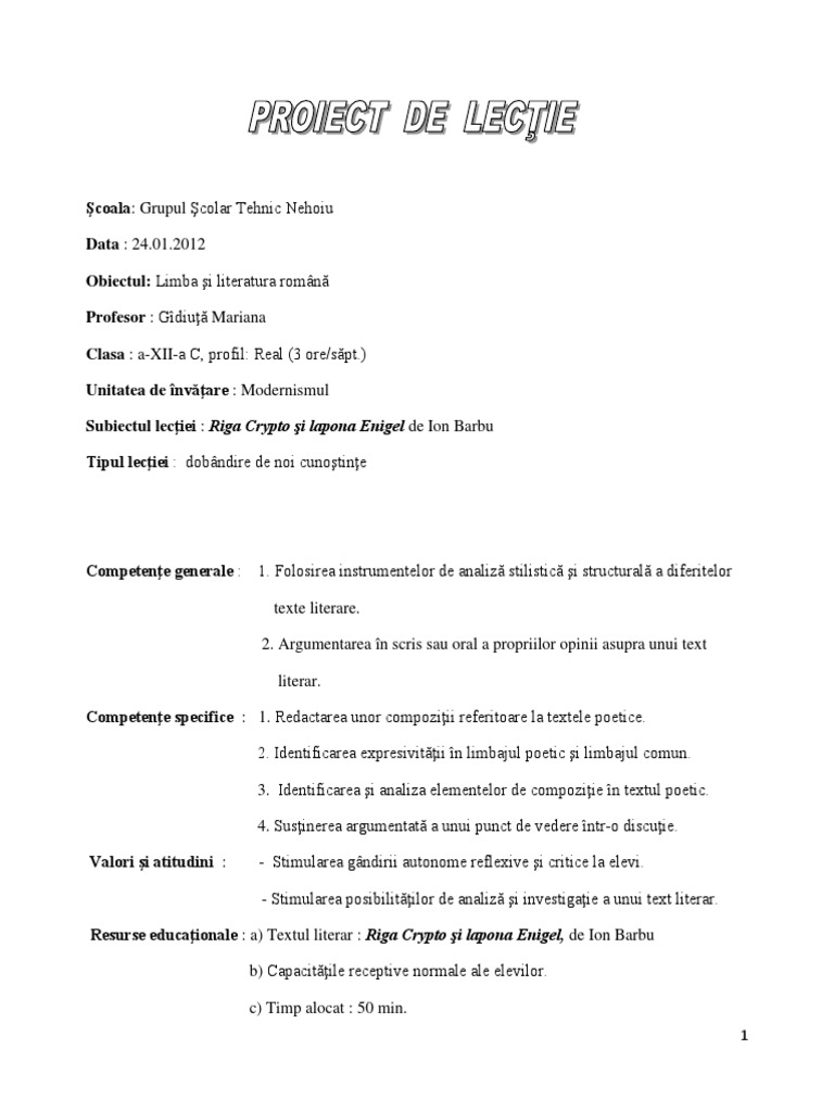 Riga Crypto și Lapona Enigel De Ion Barbu Versuri Cum Se Scrie