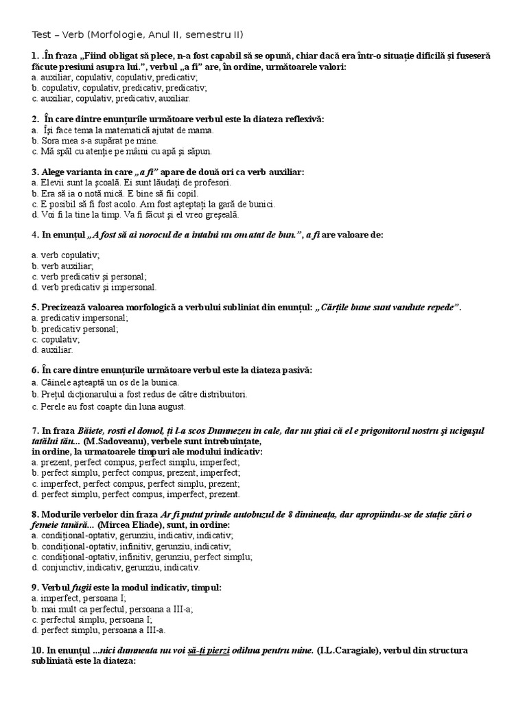 Rolul Modurilor Si Timpurilor Verbale Subiectul Ii Bac Romana