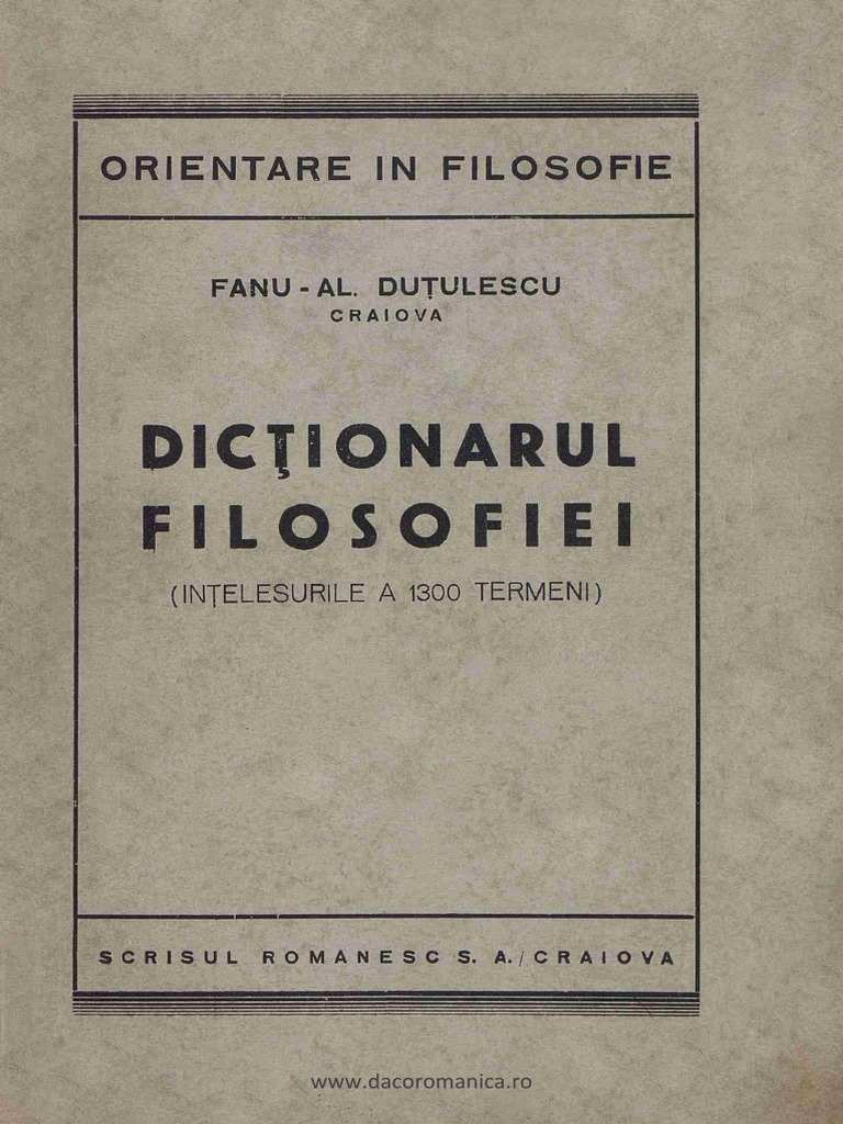 Fanu Dutulescu Dictionarul Filosofiei Intelesurile A 1300 Termeni Craiova 1945