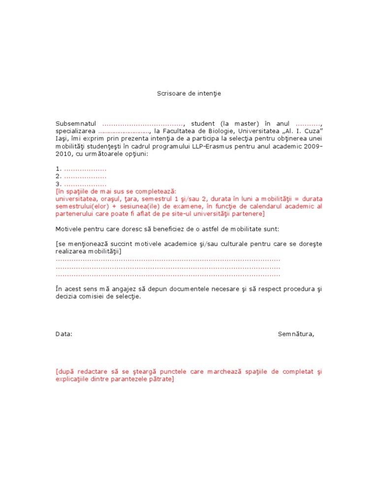 Scrisoare De Intentie