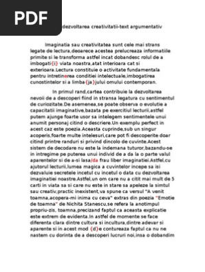 Text Argumentativ Despre Rolul Lecturii In Dezvoltarea Personala