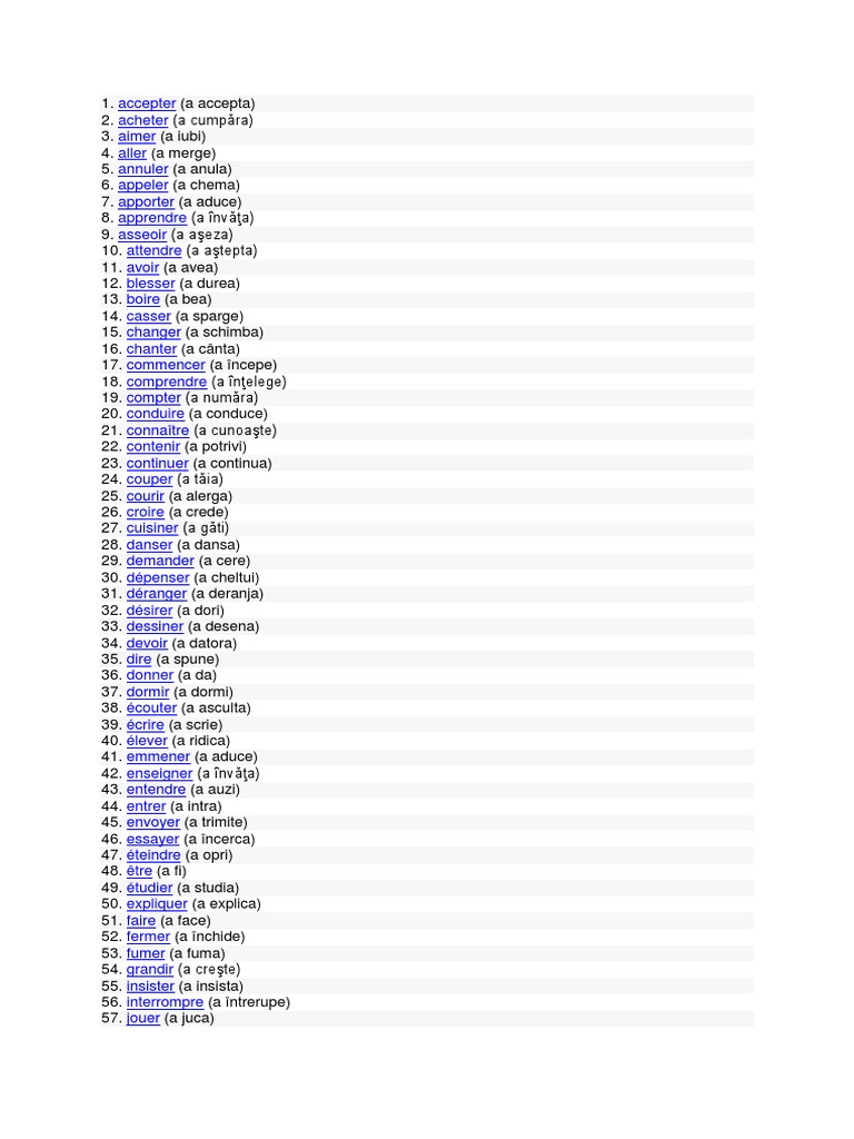 100 Verbe Din Franceza Cu Traducere Romana