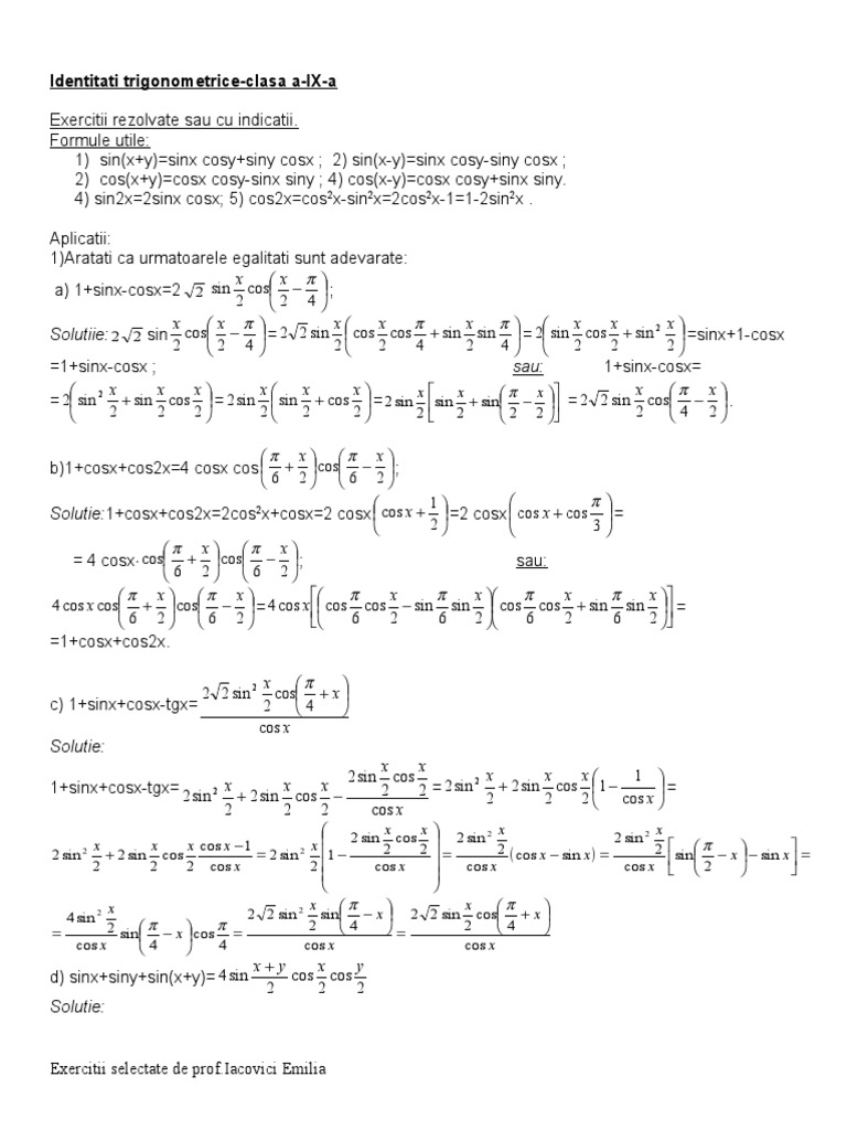 Doc Identitati Trigonometrice Clasa A Ix A Alin Aliin Academia Edu