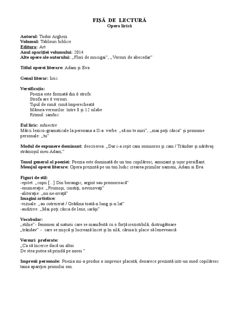 Tudor Arghezi Tablouri Biblice Pdf Document